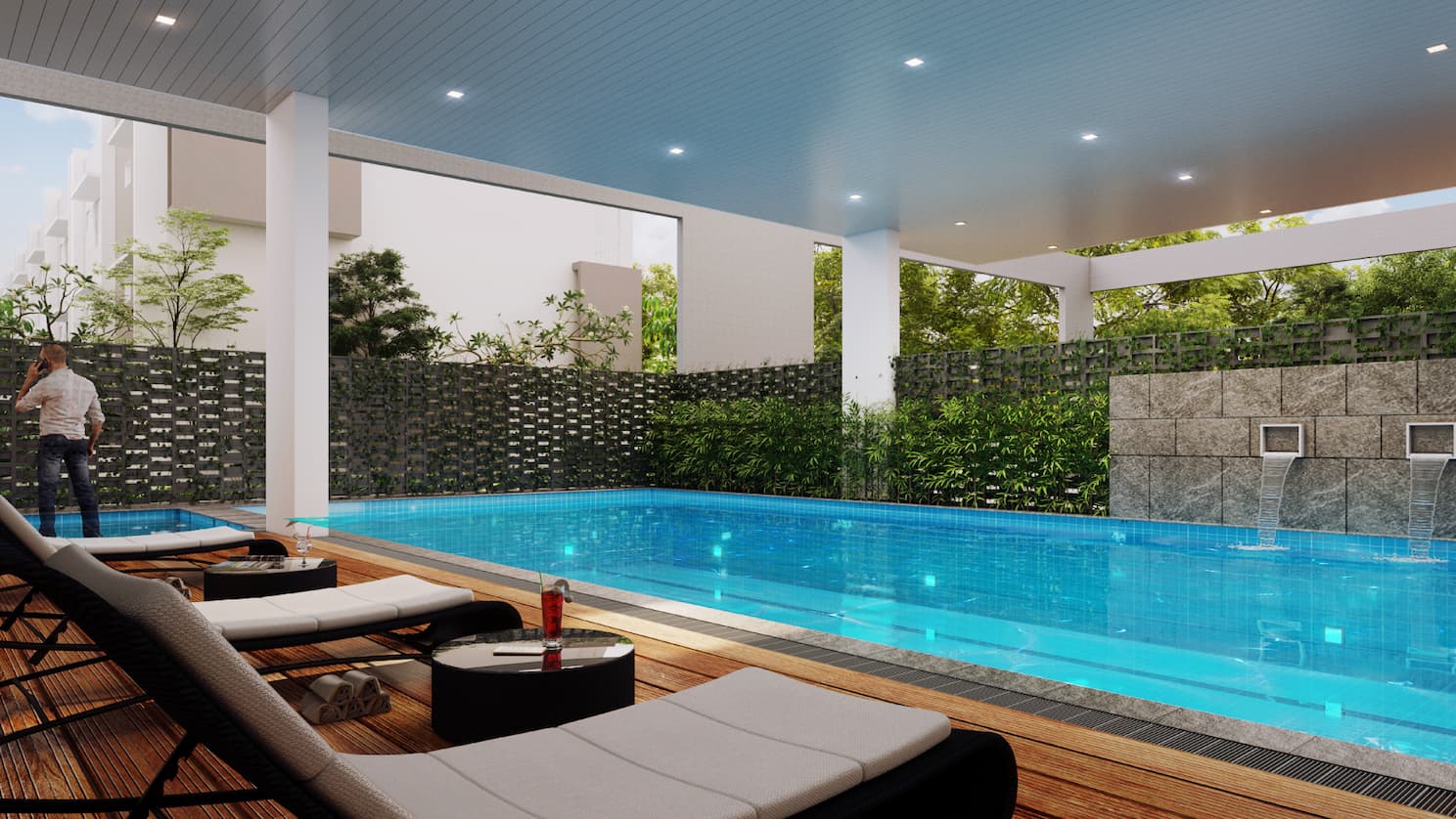 Sunlit Row Villas, Private Elevator, Unique Facades, Segmented Terraces, Spill Out Balconies, Sustainable Greenery and an 18,000 sq.ft Clubhouse provides more than enough recreational space for the entire community.